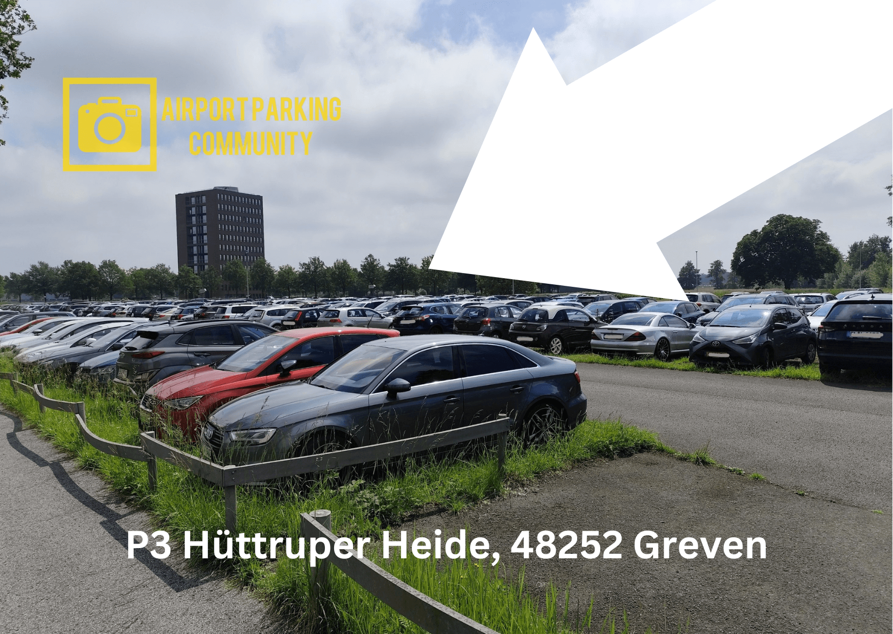 Wer eine praktische und günstigere Parklösung am Flughafen Münster/Osnabrück in Greven sucht, sollte sein Fahrzeug auf dem Parkplatz P3 abstellen. Fluggäste sollten folgende Merkmale des FMO-P3-Parkplatzes beachten. Der Parkplatz P3 für Langzeitparker befindet sich etwa 350 Meter vom Terminaleingang entfernt auf der anderen Seite der Hüttruper Heide hinter dem Gebäude der Fiege Logistik Stiftung & Co. KG. Vom P3-Parkplatz aus erreichen Sie das Flughafenterminal in etwa drei Minuten zu Fuß. Der P3-Parkplatz am Flughafen in Münster ist beleuchtet, beschrankt, teilweise eingezäunt, ausgeschildert und rund um die Uhr geöffnet. Bei der Einfahrt wird er videoüberwacht. Die Fahrwege sind asphaltiert, die Stellflächen befestigt. Es gibt dort keine maximale Einfahrtshöhe und die Parkplatzbuchten sind überhaupt nicht markiert.