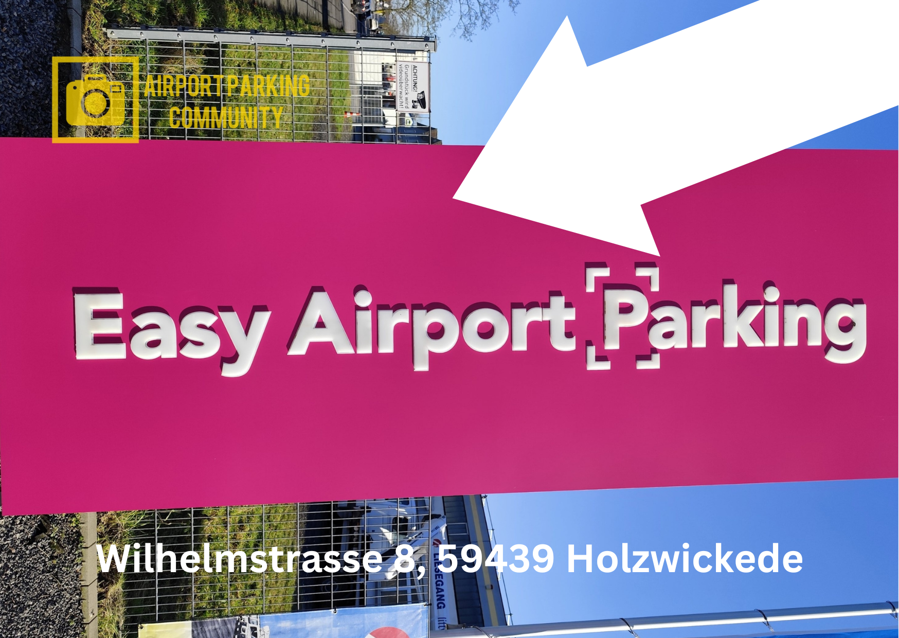 Leider gibt es kein Bustransfer, der vom Terminal zum Parkplatz pendelt, und keine Gepäckwagenstation für Ihre große Koffer. Wir empfehlen Ihnen zuerst zum Terminaleingang zu fahren, dort Ihre Mitreisende und Ihre Koffer absetzen und danach zum Parkplatzgelände auf der Wilhelmstrasse in Holzwickede zu fahren. Die Vorfahrt zum Terminalgebäude zum Beladen, Entladen, Abholen oder Absetzen ist für kurze Zeit bis 5 Minuten kostenfrei. Easy Airport Parking Parkplatz ist beleuchtet, beschrankt, asphaltiert, gepflastert, umzäunt, videoüberwacht, abgesichert und 24 Stunden geöffnet. Eine Reservierung können Sie online auf der Webseite des Parkplatzbetreibers vornehmen. Optionen mit kostenlosem Storno oder einem XXL Parkplatz (bis 3,5 Meter breit) können dazu gebucht werden. Die Zufahrt auf das Parkplatzgelände befindet sich auf der Kreuzung Wilhelmstrasse / Zur Alten Kolonie und ist mit einem großen P ausgeschildert. Sicherheit Ihres Fahrzeuges wird durch die Rund-um-die-Uhr Videoüberwachung garantiert. Eine ESSO Tankstelle befindet sich direkt gegenüber dem Terminaleingang auf der Nordstrasse. Eine Schlüsselabgabe ist beim Easy Airport Parking nicht nötig. Ihre Fahrzeugschlüssel nehmen Sie auf Ihre Reise mit. Es gibt keine maximale Einfahrtshöhe und bei Fragen oder Problemen können Sie sich an die Zentrale über die Gegensprechanlage melden. Drücken Sie einfach den roten Knopf.