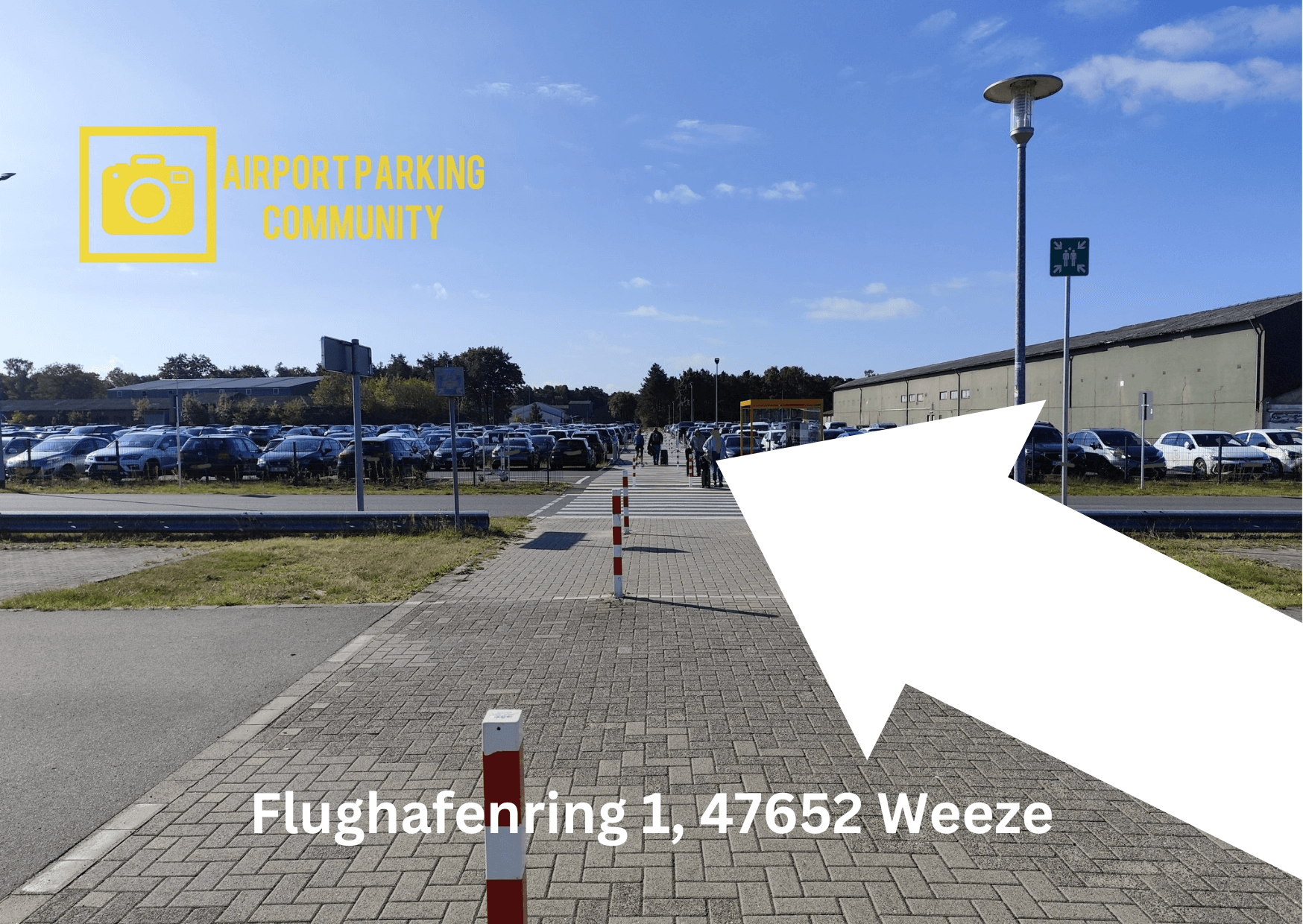 Heenvlucht: Op de dag van vertrek rijdt u naar de luchthaven van Weeze en neemt u uw reserveringsbevestiging mee. Bij de toegang tot de luchthaven betaalt u een toegangsticket en gooit u dit in geen geval weg. U rijdt verder naar parkeerplaats P1. P1 is aangegeven en bevindt zich direct achter de parkeerplaats voor kort parkeren bij de terminal. Voor de oprit trekken spontane parkeerders een parkeerkaartje bij de slagboom. Voor degenen die online hebben gereserveerd, wordt de toegang geregeld door middel van kentekenherkenning.