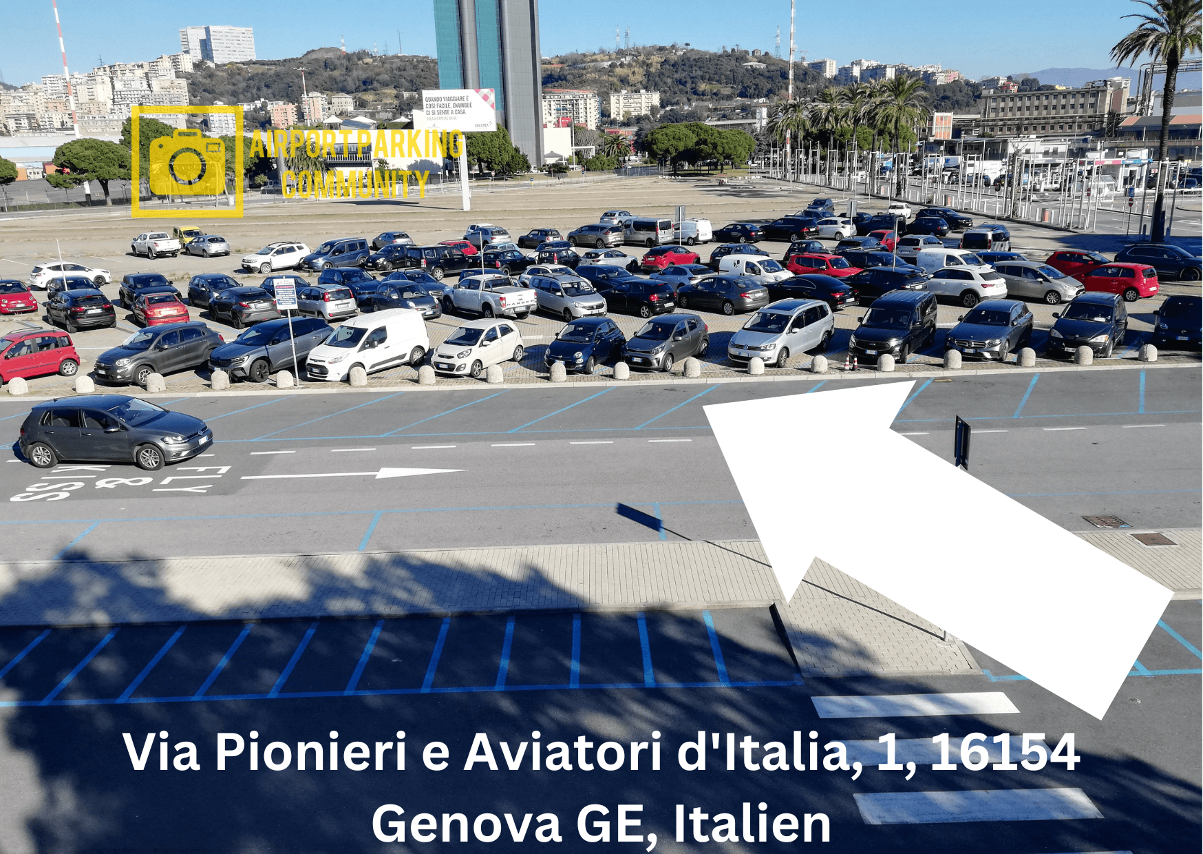 Il parcheggio scoperto P1 dell'Aeroporto Cristoforo Colombo di Genova si trova direttamente di fronte all'edificio del terminal. La distanza è compresa tra 100 e 200 metri a seconda di dove avete parcheggiato l'auto. P1 è il parcheggio più grande di questo aeroporto. Qui sono a disposizione dei viaggiatori un totale di circa 800 posti auto. Anche i viaggiatori con una moto possono parcheggiare lì. Il parcheggio P1 è adatto sia ai parcheggiatori a breve che a lungo termine. Il parcheggio P1 dell'Aeroporto di Genova è recintato, videosorvegliato, illuminato, pavimentato, asfaltato, aperto 24 ore su 24 e protetto da sbarra all'ingresso. Proprio accanto all'edificio del terminal ci sono parcheggi per persone con disabilità gravi, donne incinte, auto elettriche e pullman. I parcheggi sono chiaramente segnalati. I parcheggi per le persone con disabilità sono molto ampi. Non esiste un limite massimo di altezza. La postazione per il carrello dei bagagli si trova al centro del parcheggio davanti all'ingresso principale al piano terra. La prenotazione per il parcheggio P1 può essere effettuata online sul sito web dell'aeroporto di GOA. Naturalmente è possibile parcheggiare spontaneamente anche senza prenotazione. Per maggiori informazioni e il prezzo del parcheggio visita il sito ufficiale degli Aeroporti di Genova.