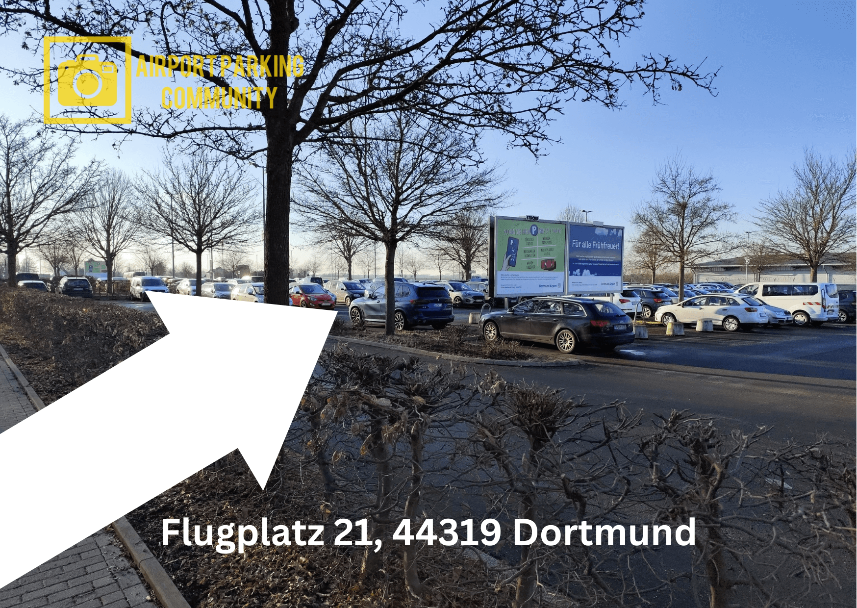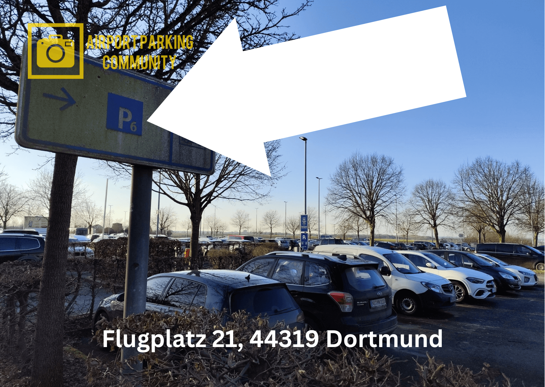 Da jeder Flughafen mehrere Parkplätze und Parkhäuser in seiner Umgebung hat, nicht nur die, die dem Flughafen selbst gehören, sondern auch private Parkplatzanbieter, es lohnt sich immer die Preise, die Entfernung und die Angebote vor der Buchung zu vergleichen. Zu den günstigen Parking-Optionen am Airport Dortmund in Holzwickede gehört auch der Außenparkplatz P6 Ost und P6 West (ehemaliger P7). Parkplätze P6 Ost und West sind unsere Parking Option Nummer 6. P6 befindet sich etwa 1500 Meter vom Dortmunder Terminal entfernt. Um diesen Parkplatz zu finden, müssen Sie vom Terminal circa 900 Meter entlang der Chaussee in die Richtung Dortmund-Aplerbeck fahren oder laufen. Die Zufahrt zum P6 West und P6 Ost, sowie zu den Parkhäusern P4 und P5 ist gut ausgeschildert. P6 ist asphaltiert, beschrankt, beleuchtet und 24 Stunden geöffnet. Kontrollgänge werden ab und zu vom Sicherheitsdienst durchgeführt.
